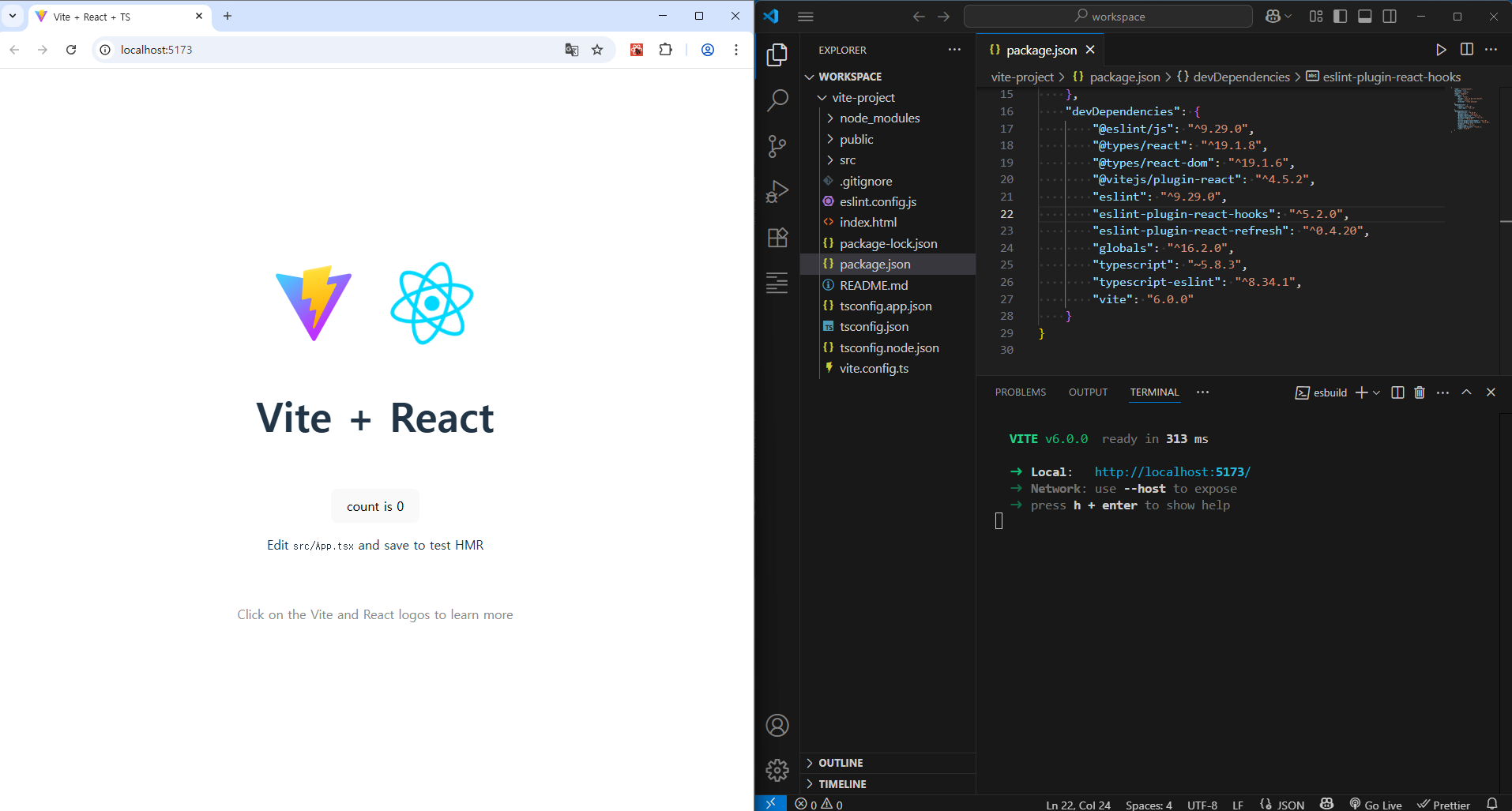 그 당시에는 vite 6.3.5 버전으로 환경 구성을 하고 실행까지 잘 되는 것까지 확인하였다.