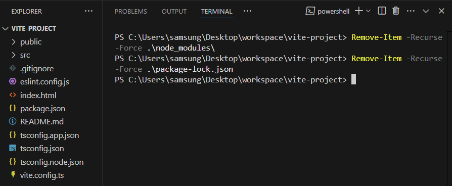 Remove-Item -Force .\package-lock.json