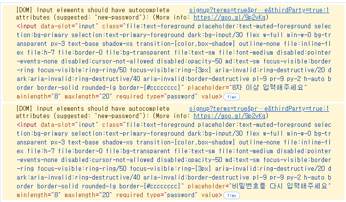 [E-LOG] Input elements should have autocomplete attributes 본문