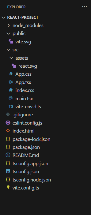 아래는 vite로 생성한 리액트 프로젝트에서 기본적으로 설치되는 폴더 및 파일들이다.