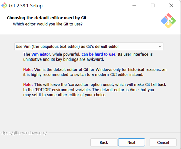 8.Git의 기본 편집기를 선택 후 Next 클릭