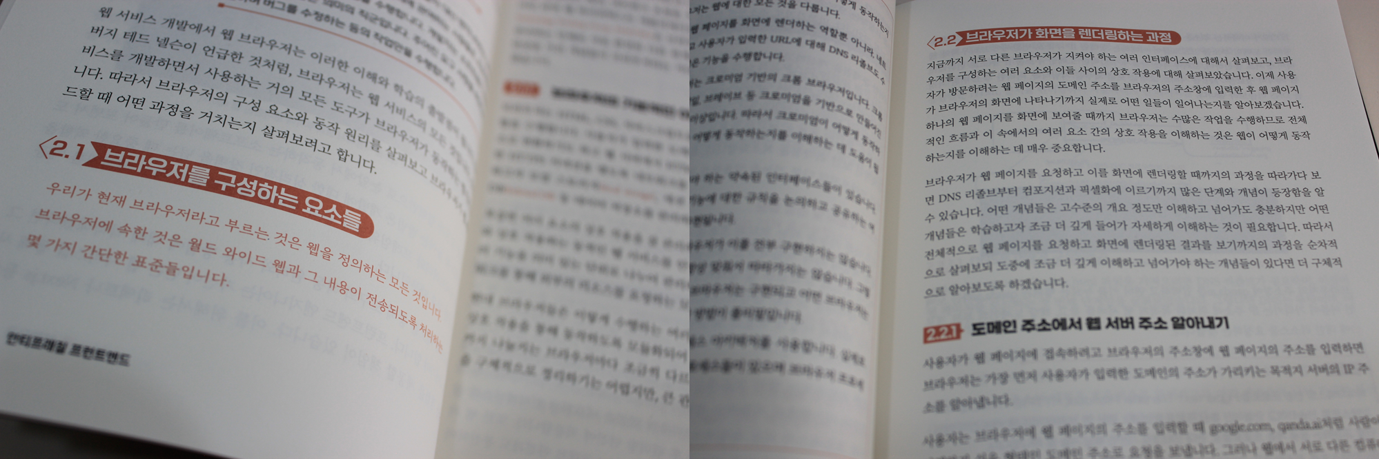 각 장마다 브라우저, 리액트,Next.js, 인프라 구조로 이어지는 흐름이 체계적이라 프런트엔드의 전체 그림을 그리기에 적합했다.
