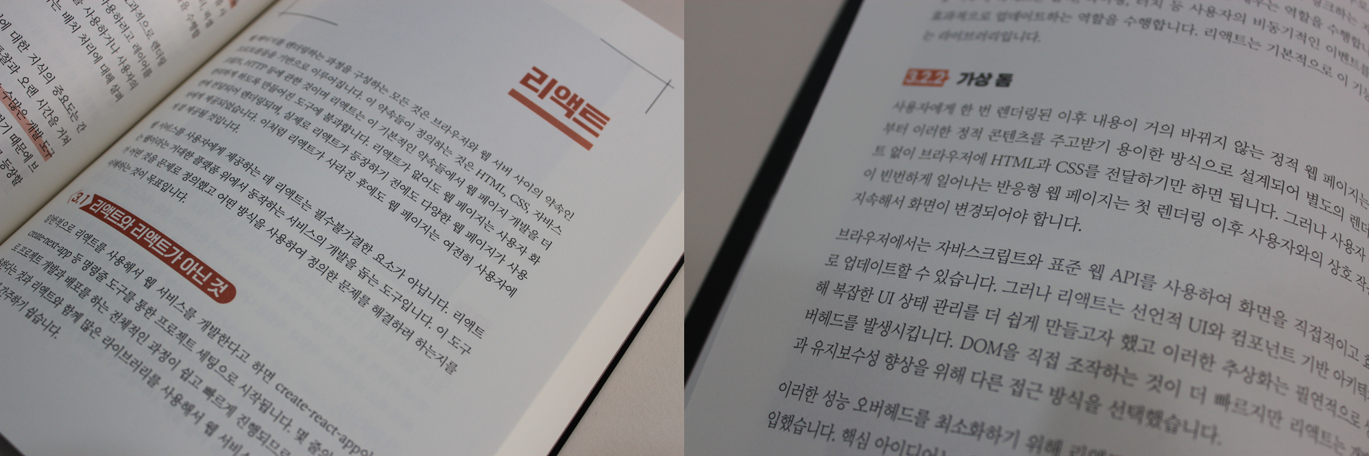 리액트가 무엇인지, 리액트가 어떻게 동작하는지 가상돔에 대한 설명이 나와 있다.