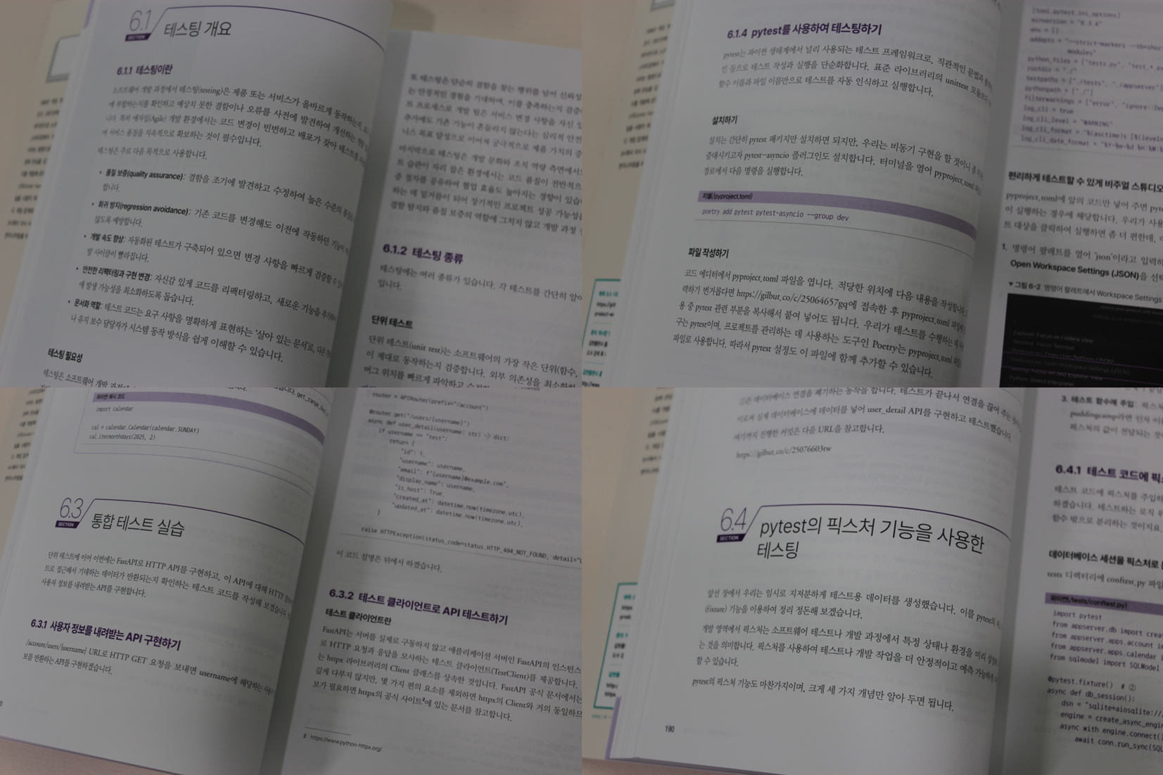 이 책은 FastAPI가 무엇인지에 대한 개념서라기보다 FastAPI가 무엇인지 어떻게 사용하는지에 대한 가이드 북에 가까웠다.