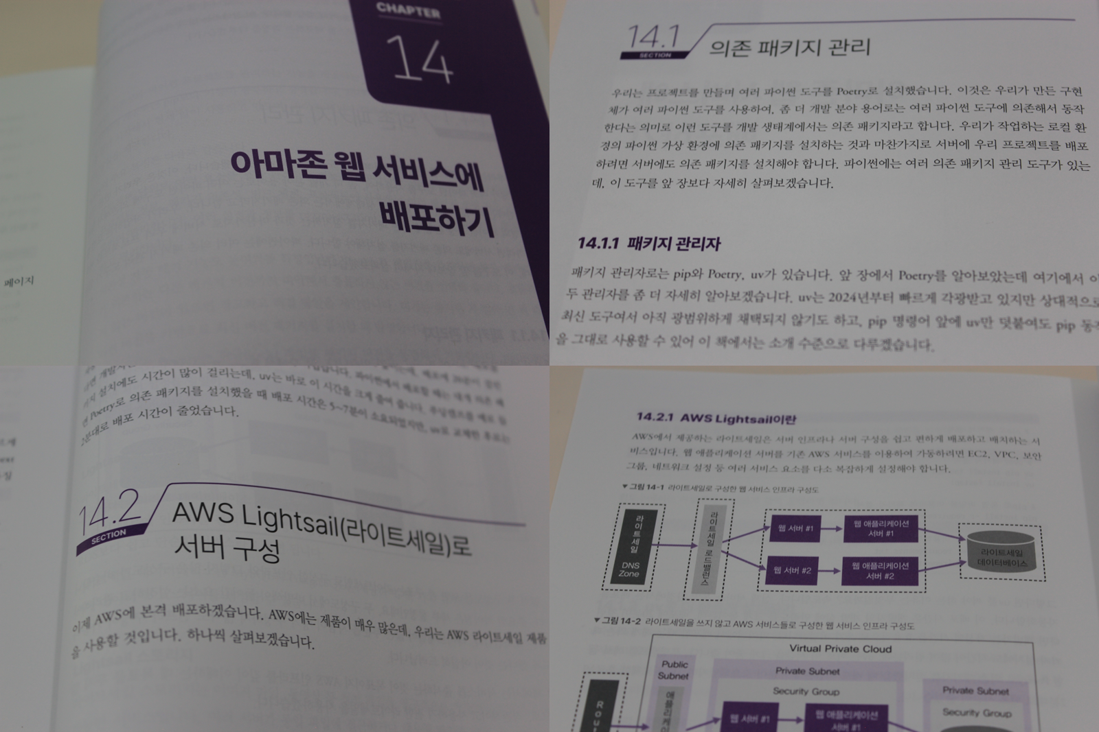 마지막 14장에서는 클라우드 서비스인 AWS를 활용해 개발한 프로젝트를 실제로 배포하는 과정을 다룬다.