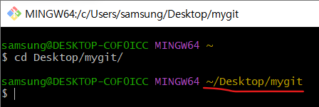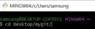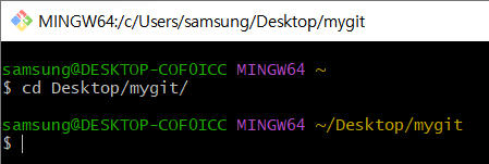 C:\Users\samsung\Desktop\mygit 로 이동하기 위해서는 cd 명령어를 사용하여 폴더를 이동해야 합니다.