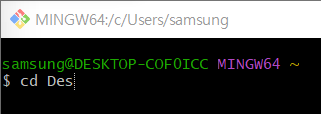 samsung@DESKTOP-COF0ICC MINGW64 ~ 에서