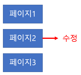 이전 버전(=버전1)에서 페이지 2가 업데이트된 페이지 2 수정본이 반영된 페이지 1,2(수정된),3이 반영된다.