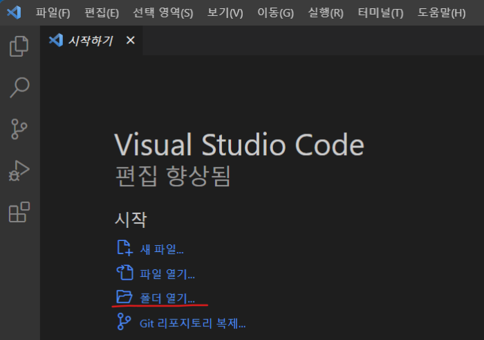 또는 상단 메뉴에서 파일 > 폴더 열기