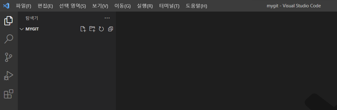 1. VS code에서 mygit 폴더(깃 로컬 저장소)를 열어줍니다.