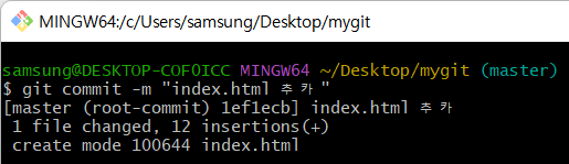 5. gitbash에서 mygit 폴더로 접속하여 명령어를 입력해 줍니다.