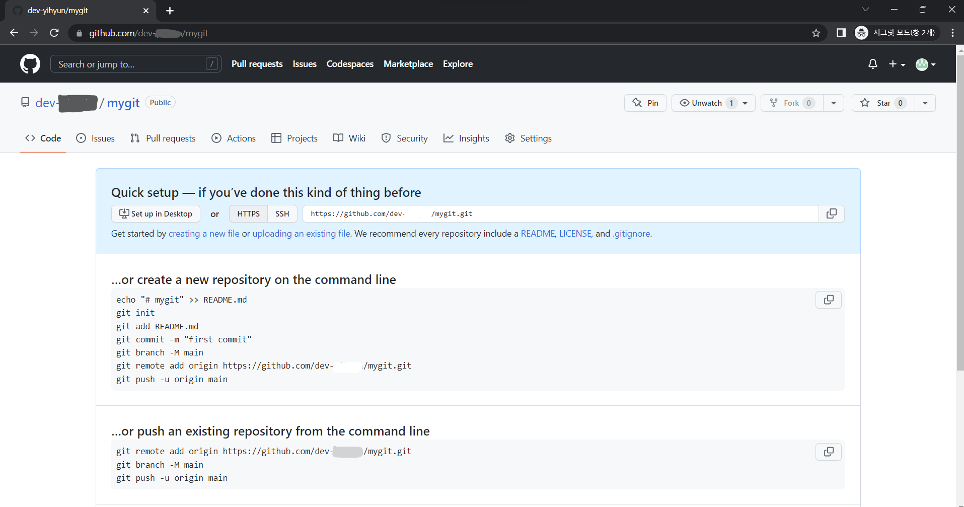 New repository : 새로운 저장소 만들기