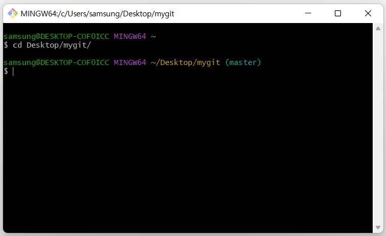 1. git bash를 실행한 후 로컬 저장소에 접속합니다.