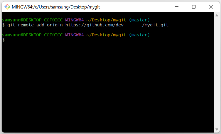 6. 내 컴퓨터 프로젝트 폴더에 깃헙 저장소 주소 알려주기 ( git remote add )