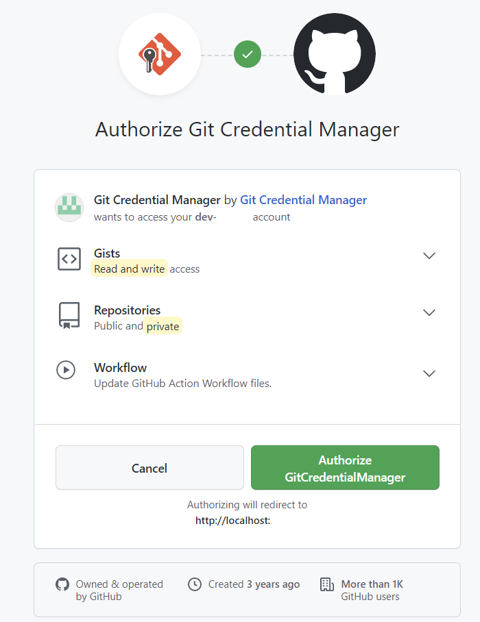 Authorize GitCredential Manager 클릭