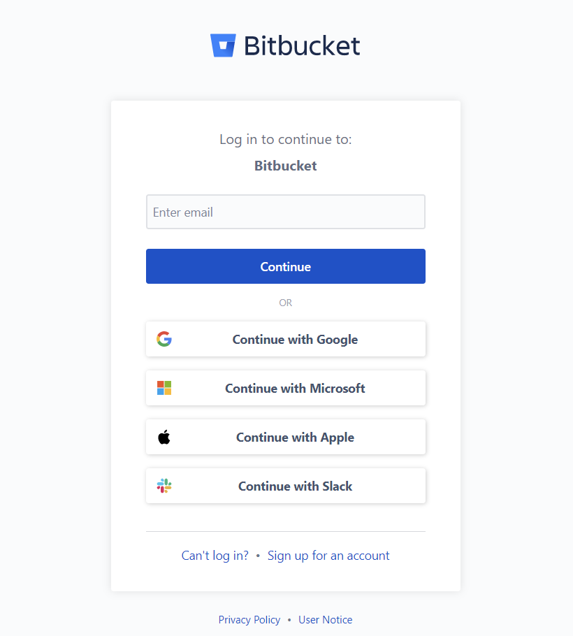 Bitbucket을 선택하면 아래와 같은 로그인 화면이 나타납니다. 원하는 방식으로 로그인 합니다.