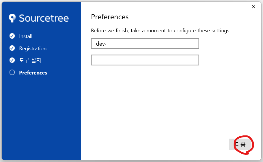 인증 성공이 완료되면 Source tree에서 등록을 완료해 줍니다. 다음 클릭