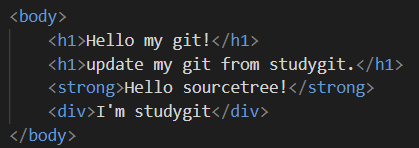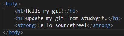 4. 로컬 저장소 studygit에 있는 index.html을 수정한다.