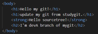 코드로는 I'm devA branch of mygit이 index.html이 나타난다.