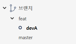 마스터 브랜치 기준으로 feat/devB , feat/devA 를 만들었다.