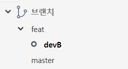 마스터 브랜치 기준으로 feat/devB , feat/devA 를 만들었다.