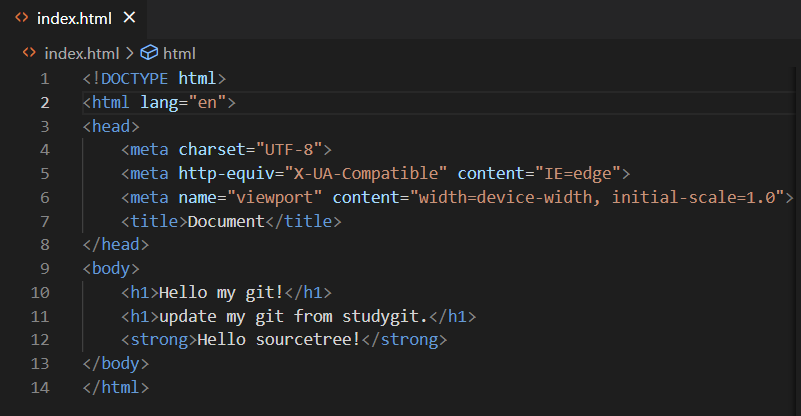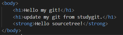 4. 로컬 저장소 studygit에 있는 index.html을 수정한다.