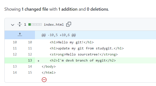 코드로는 I'm devA branch of mygit이 index.html이 나타난다.