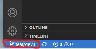 이때 VScode는 깃과 연동이 되어있어 왼쪽 하단에 보면 현재 브랜치를 확인할 수 있다.