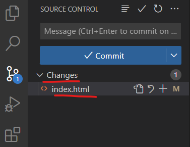 12. VScode에서 깃 패널을 클릭하면 index.html 파일이 나타난다.