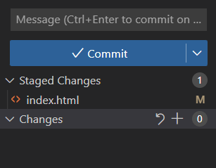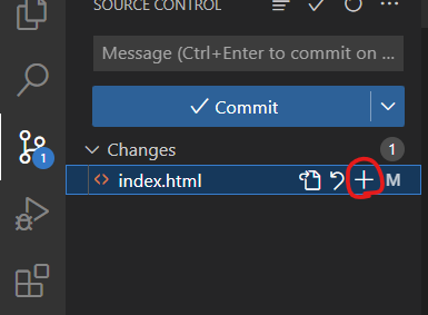 5. index.html 옆에 있는 + 버튼을 클릭하면 Stage Area에 업로드된다.