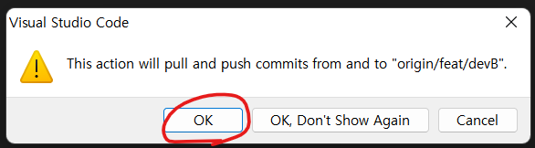 새로고침 버튼 클릭 후 OK 버튼 클릭하면 push가 완료되었다.