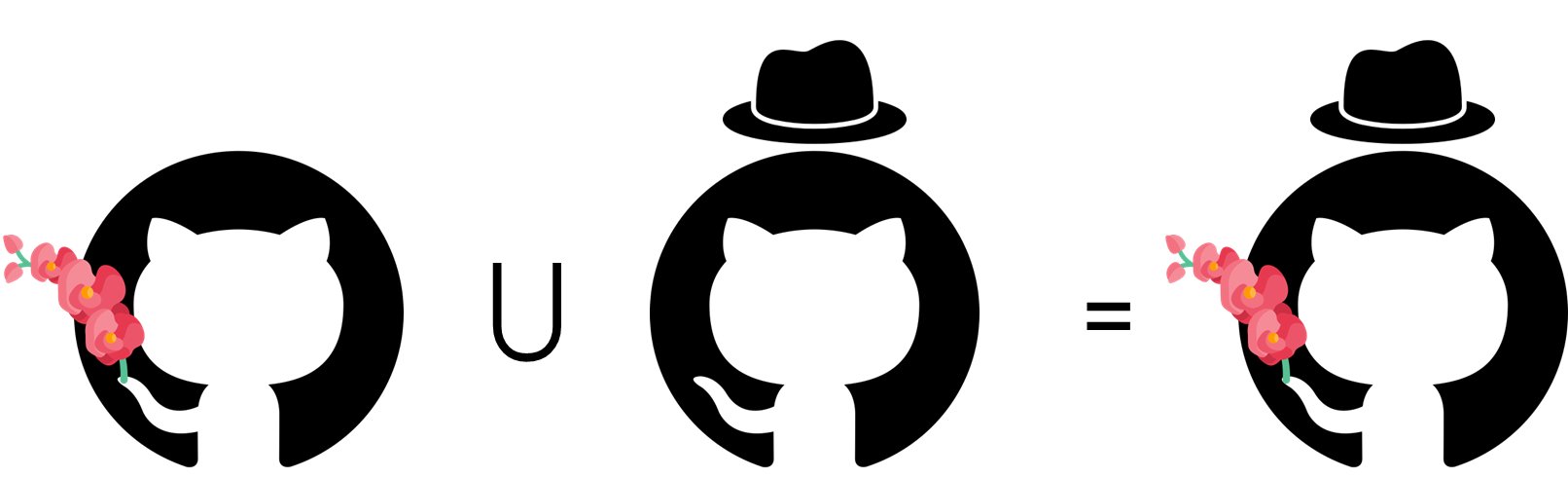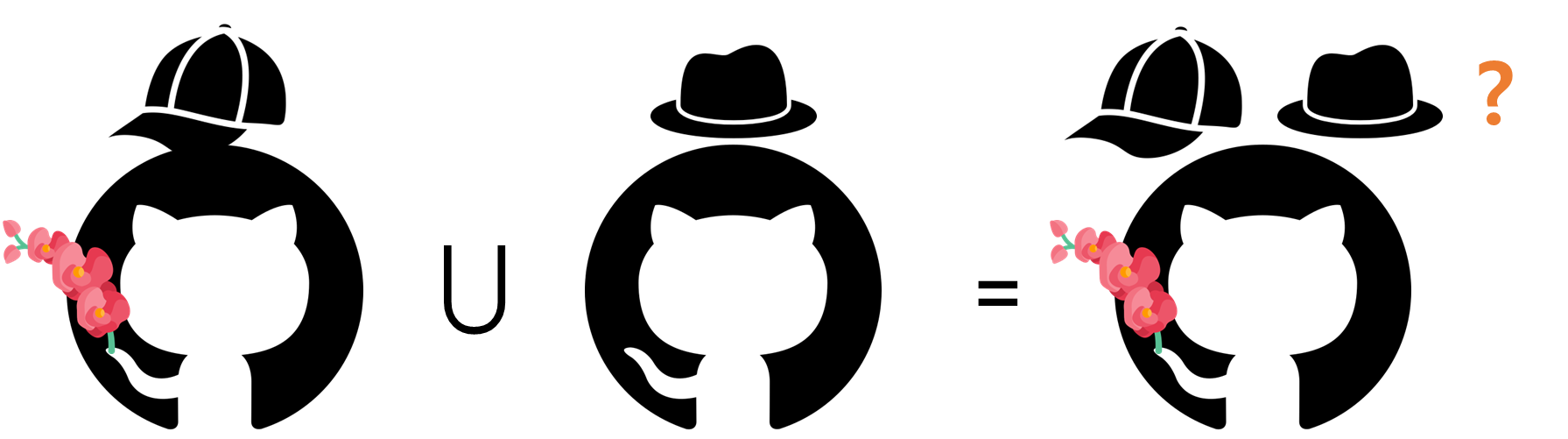 A ⋃ B의 결과는 모자를 쓴 고양이인(B)의 모양과 똑같다. 즉 A(모자를 쓰지 않은 고양이) 커밋에 B 커밋의 합쳤을 때의 상태는 B커밋이 된다는 것이다.