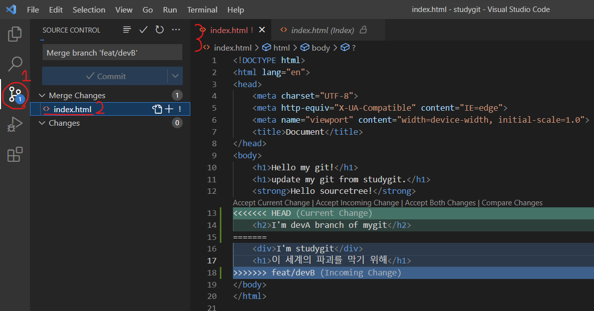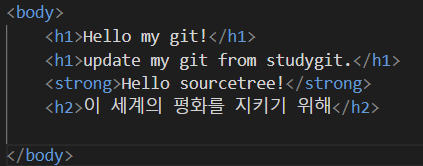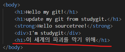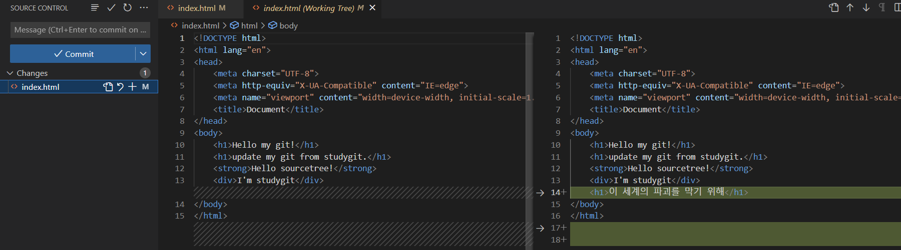 2. VScode에서 studygit에 있는 index.html을 수정한다.