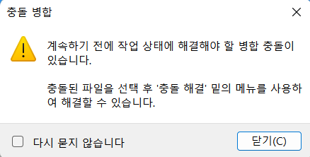 충돌 난 부분을 수동적으로 수정해 줍니다.
