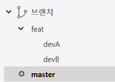 15. master 브랜치에서 Merge branch 'feat/devB'를 확인할 수 있다.