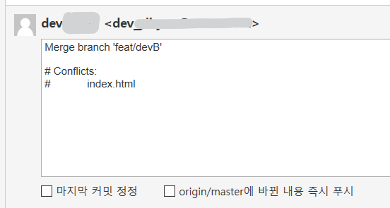 이것이 동시에 두 코드를 수정하여 충돌이 난상태이다.