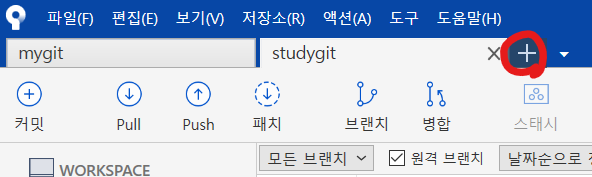 5. 소스트리에서 + 버튼을 클릭