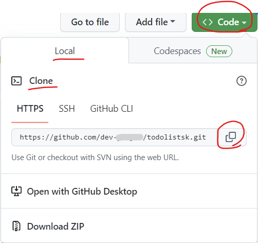 4. Code를 클릭하여 HTTPS에서 url을 복사한다.