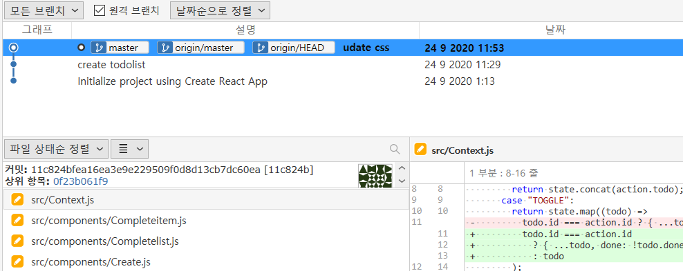8. 지금까지의 커밋 기록들을 볼 수 있다.