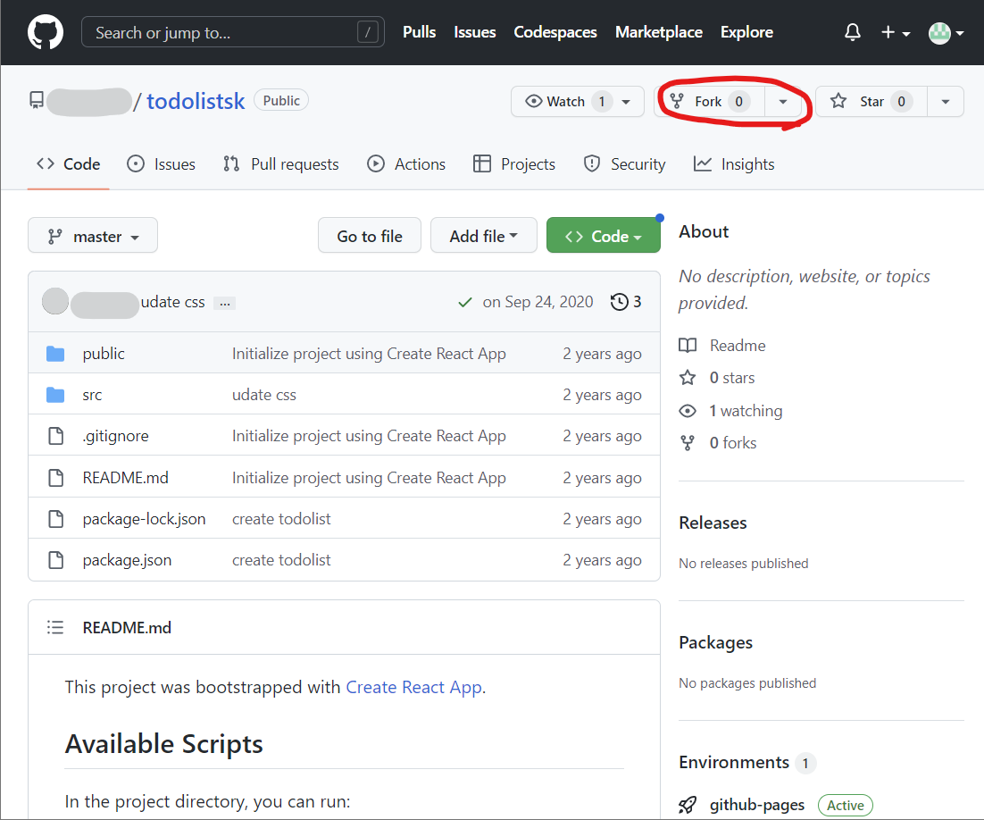 오른쪽 상단에 있는 Fork버튼을 클릭한다.
