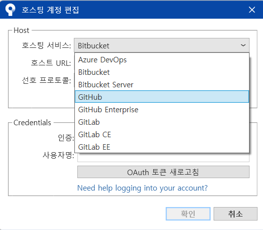 호스팅 서비스에서 GitHub 클릭