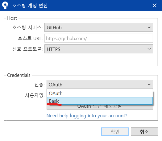 인증에서 Basic 클릭
