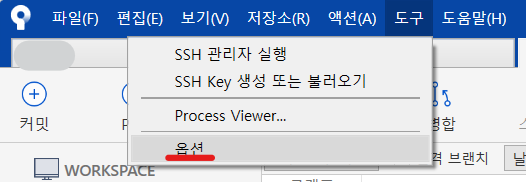 1. 소스트리에서 도구 > 옵션