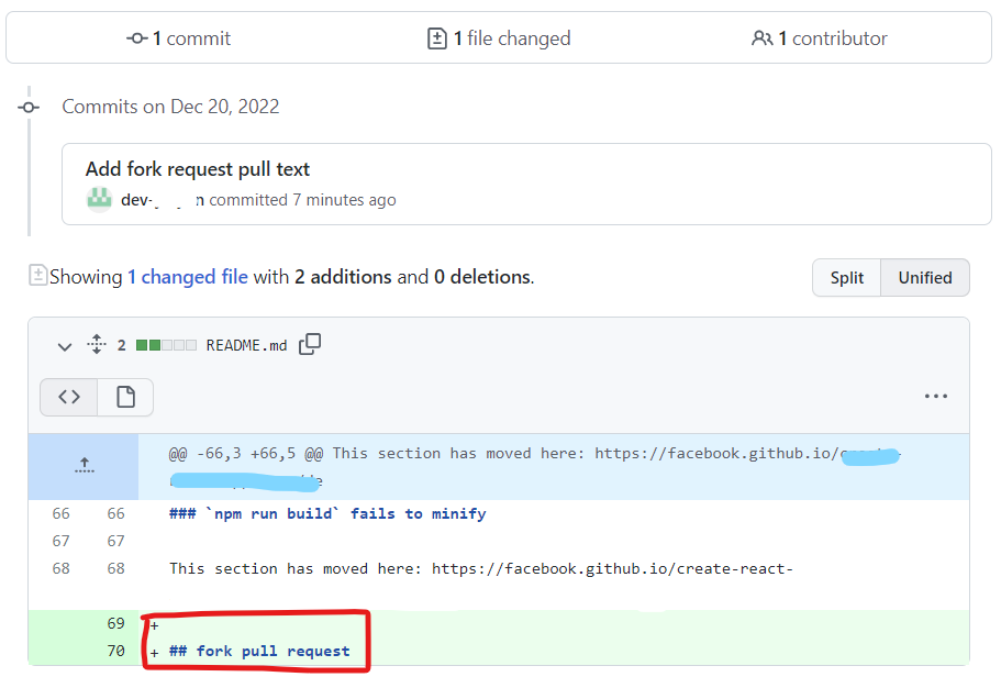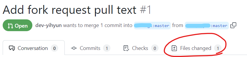 코드를 수정한 사람이 원본 저장소의 개발자에게 master 브랜치에 Merge를 해달라고 내용을 전달한것을 볼 수 있다.