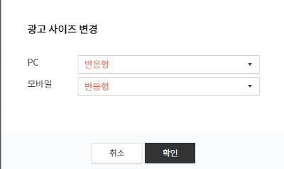 수정 버튼을 클릭하면 광고 사이즈를 변경할 수 있다.