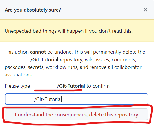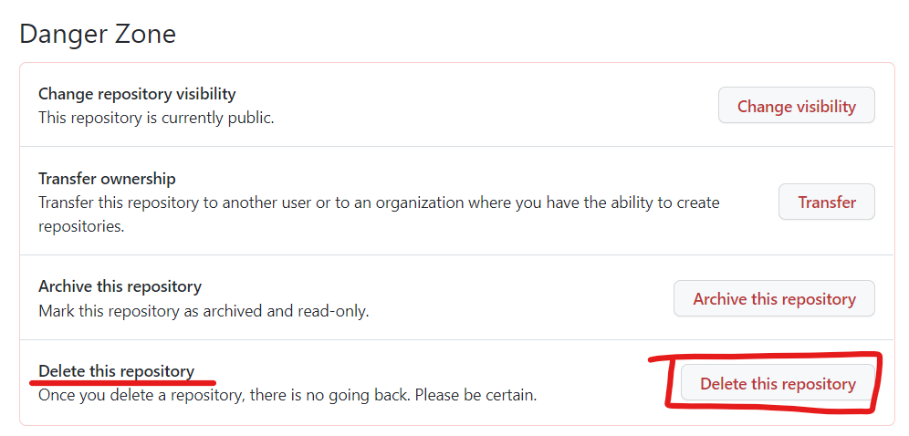 3. General의 최하단에 Danger Zone에서 ' Delete this repository '클릭