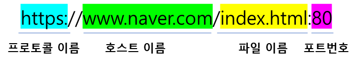 웹 브라우저의 주소창에 적어주는 값으로 URL은 호스트 이름에 파일의 경로를 붙여 표시한다.