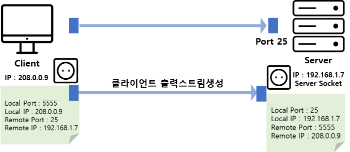 서버는 연결 요청만을 받는 소켓을 따로 가지고있다.