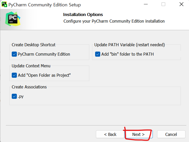 Update PATH cariable (restart needed) : 명령프롬프트에서 파이참에 직접 접근